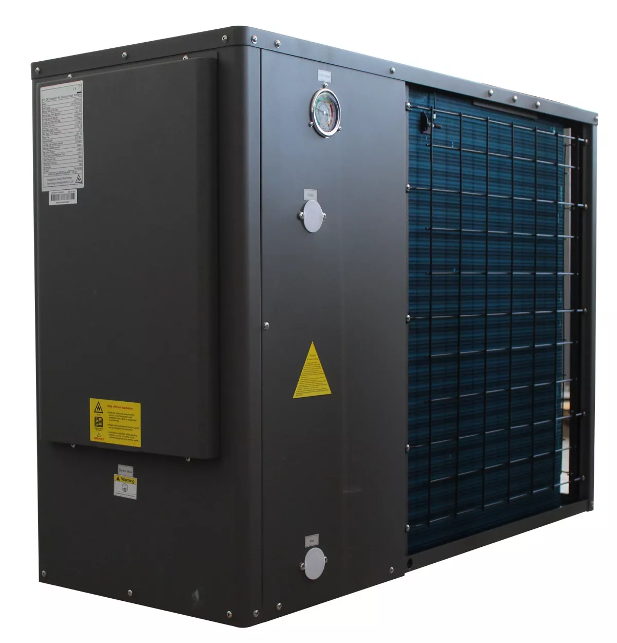 Pompa include componente electronice avansate de la CAREL INDUSTRIES S.p.A. (Italia) — controller, modul inverter, senzori de presiune și valvă de expansiune EEV — garantând o operare sigură, stabilă și smart. Controlul inteligent cu monitorizare WiFi permite setări și asistență la distanță prin aplicația mobilă HEAT PUMP / HEAT PUMP PRO.